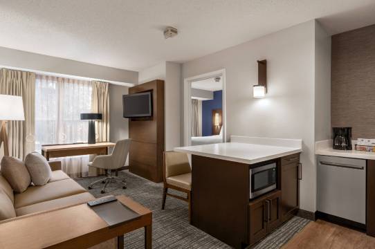 有 96 间特色装修的客房提供备有冰箱和炉灶的厨房;您定能在旅途中找到家的舒适。您的加厚层卧床备有高档床上用品。带有有线频道的 40 英寸平板电视可满足您的娱乐需求;同时提供免费无线网络,方便您与朋友保持联系。便利设施包括电话,以及书桌和微波炉。
