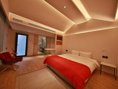 房间设施齐全,地暖非常暖和,如果能有加湿器就更好了,房间的吹风机和马桶非常好用,热水很舒服,每个房间设计都很独特,适合情侣出行。