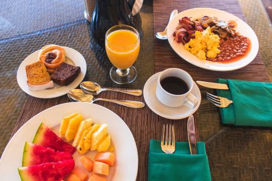 度假村设有 3 间餐厅 ,您不妨选择到Pacifika享用亚洲菜;也可以待在房间里,享受部分时段客房送餐服务。欢迎光临泳池酒吧,喝一杯,放松一下;此外还有 3 间酒吧/酒廊供您选择。每天 07:00 至 10:30 提供收费的自助式早餐。