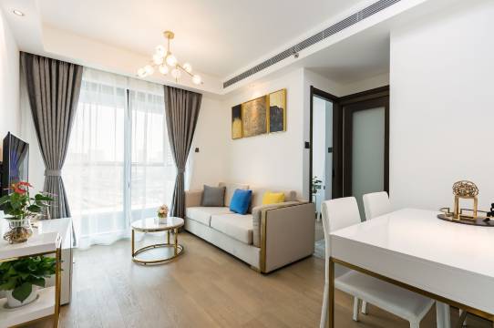 这公寓太棒啦!房间采光超棒,阳光洒满一地。客厅宽敞,沙发柔软。卫生间干净整洁。小区环境优美,安保也好,住着特别安心舒适