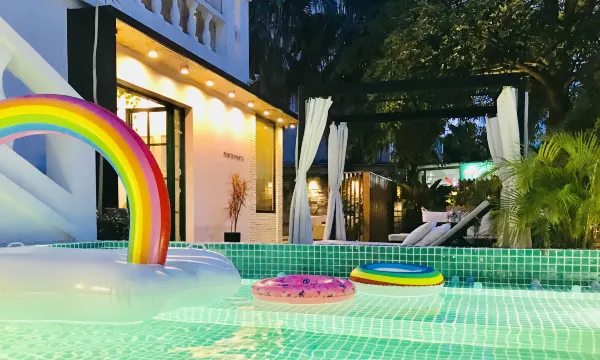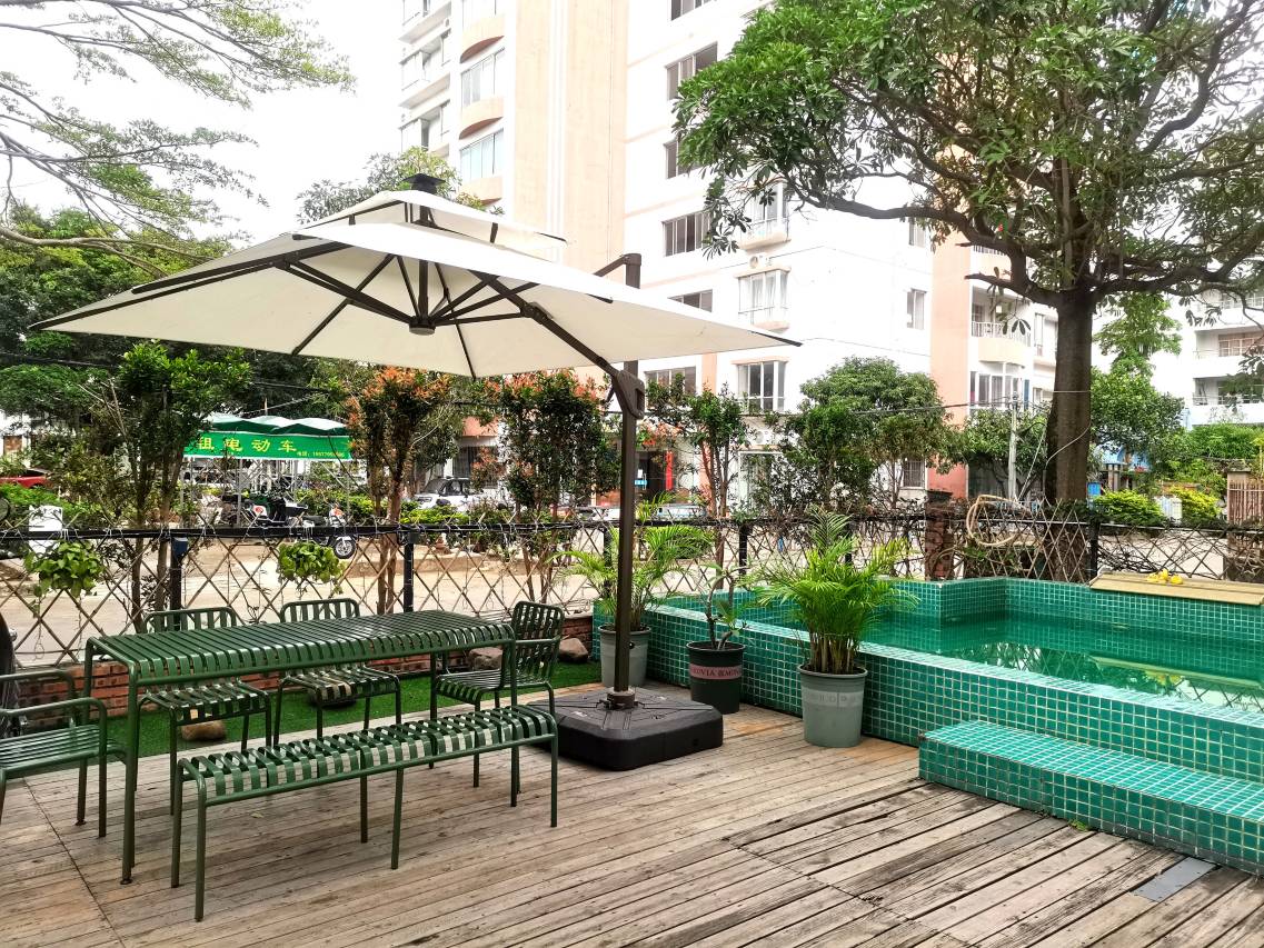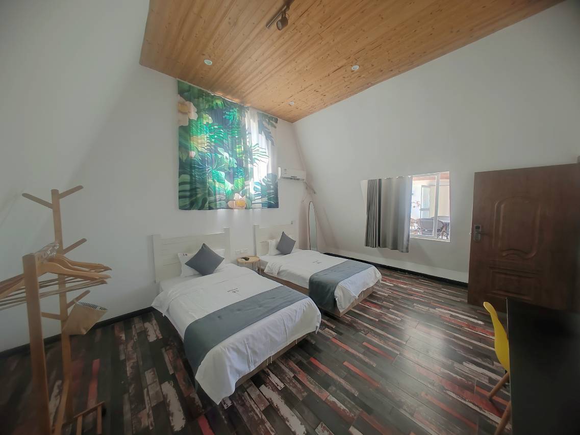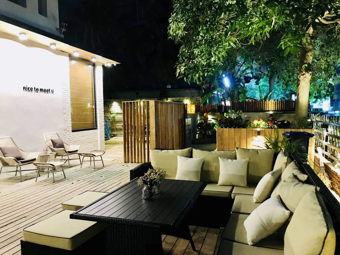 这里有休闲舒适的院子,柔软的沙发可供客人在此休息聊天。另外还有室外书吧,可供客人阅读。多功能化的院子充满了ins北欧风,可以让您在休闲之余尽情拍照。留言墙许愿瓶也是一大特色,为来往的客人留下了美好的回忆。