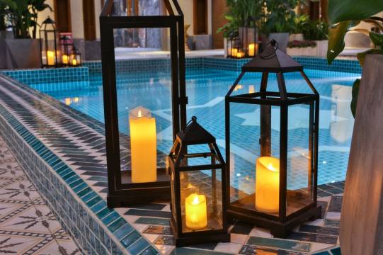 环境:院子有个游泳池楼顶有观景台还有花很漂亮