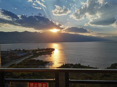房间正对洱海,海景非常好,晚霞也特别漂亮,走到海边也很近