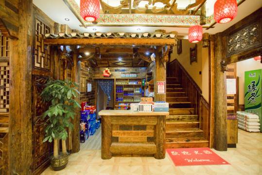 出门走到核心景区服务中心比较近。整体居住环境不错,室内装修很有民族特色,老板热情。出大门右手沿路走500百米左右,右手边有刘晓庆图片的店,米豆腐味道好。