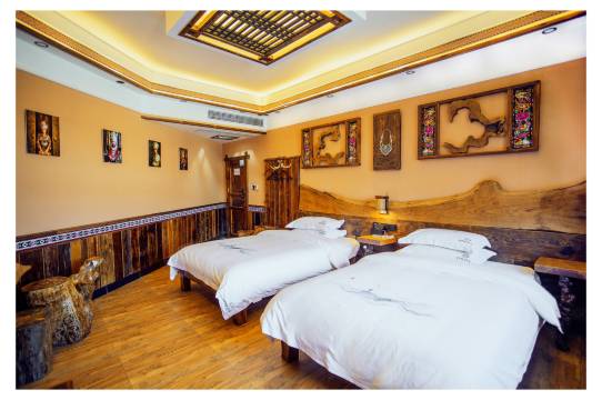 房间干净,装修民族风,一楼二楼是饭店,吃饭方便,门口就可以停车,离景区走路十分钟,