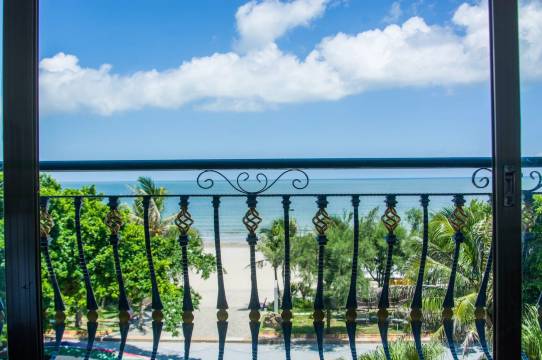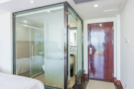 地理位置优越,离海边很近,下楼就到沙滩,阳台可以看到日出