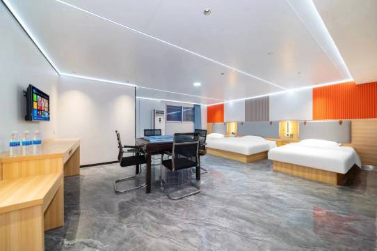 回家稍晚不想打扰家人休息,半夜3点选择入住了这家酒店。老板很热情也很给力,为了能让我休息好,特意帮忙延迟到下午3点退房。入住的时候,也给做了房型升级,体验感拉满!一楼前台旁边的雪糕可以免费拿,细节满满。最细节的地方我觉得是床头边上的充电线,很多酒店都是搞那种扫码充电,功率小充电慢还不说,收费还贵得离谱。这家店设置的免费充电线绝对值得给满分。房间够大,分布合理,不愧是设计师出身的哈。