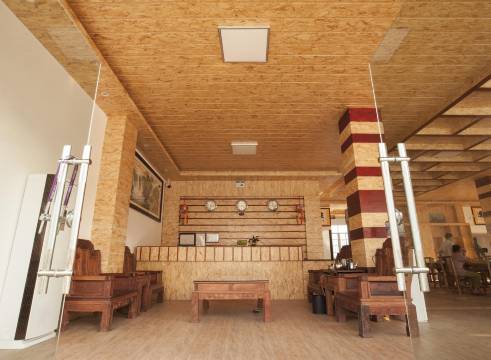 房间宽大,设施较全,实木地板地家具,非常环保,楼下有餐厅,吃饭也方便。床上用品干净整洁,热水水量大,温度够高,推荐一下。老板人很好,同行杯子忘在餐厅,老板帮忙找回并负责邮寄,非常感谢!