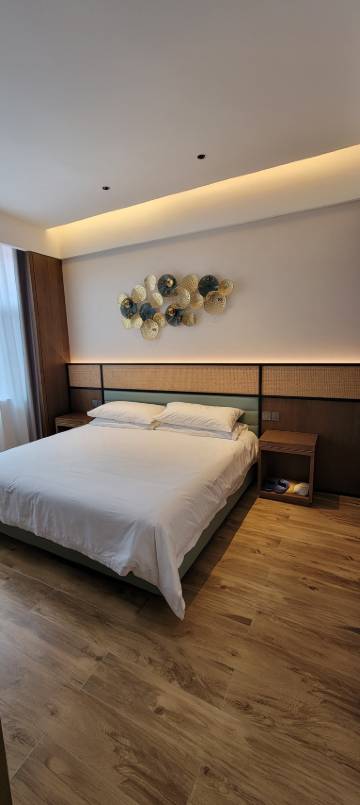 房间独处一隅,周边商业氛围浓厚,热闹而不喧哗,所需应有尽有,酒店装修雅致,科技而实用,大方而不宣,有星级体验,但价格出乎意料的便宜,下次还会选择居住,真好!