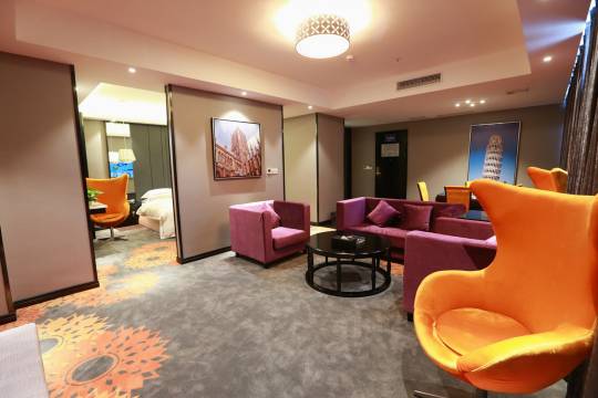 房间有点小,但是一次性的洗漱用品很齐全,还有梳妆台,出房间后还有沙发可以和家人坐在一起闲聊,而且交通便利,附近有很多吃的,早餐也还行,工作人员很热心。