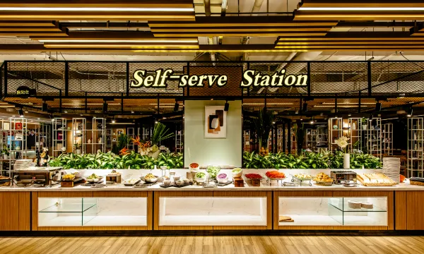 酒店负一楼近400平米的豪华自助餐厅里提供早、午、晚餐及休闲下午茶服务;让你的视觉、味觉都得到满足。