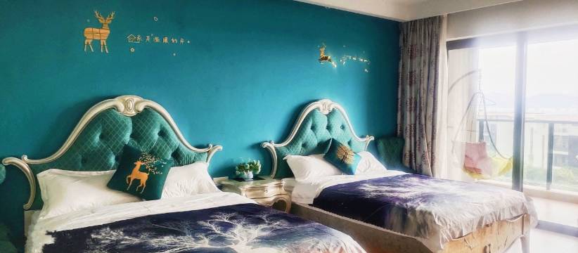 客房同栋同单元大楼可同层多间连房,每层均有一间带自动麻将机。配置奢华的欧式风格的温馨大床/浪漫双床,床垫使用高级乳胶垫,大阳台(配有大摇椅及4座休闲桌椅),自带开放式厨房配有电磁炉/抽油烟机等。高级豪华的住宿环境,细致的酒店管家服务,为您提供舒适的享受,欢迎大家到海边来捡贝壳、做沙雕,到附近的小径生态园来体验各种丰富有趣的活动及采摘/野炊/烧烤等。