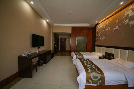 房间很宽敞,很干净,位置就在县城中间,交通便利,二楼又有美食,四楼有茶馆棋牌室,非常方便,很适合一家人来住宿。