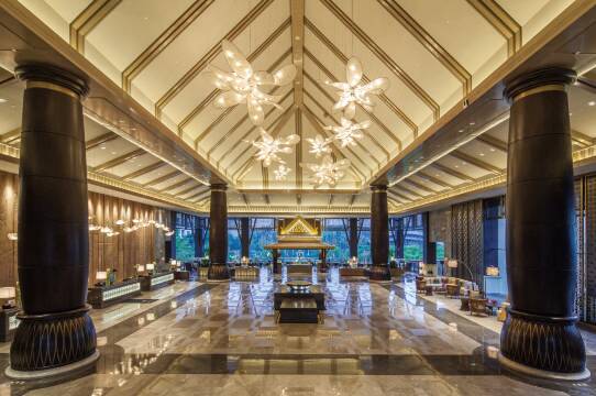 酒店位于景洪市融创西双版纳旅游度假区内,毗邻融创茂、傣秀剧场。酒店富丽堂皇却不显张扬,巧妙融合传统傣式风情于现代设计中,诠释尊贵奢华与浓郁少数民族风情的完美结合。