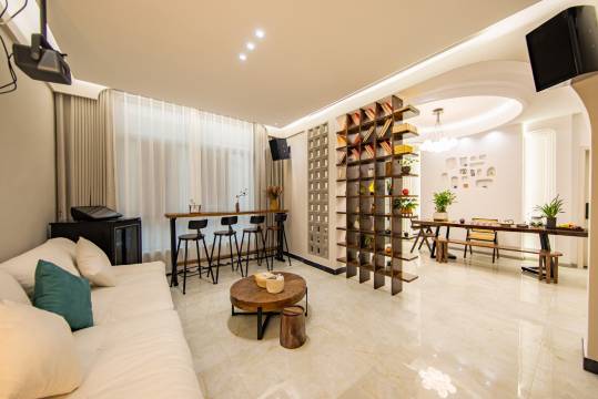 客栈位于朱家尖中心位置,出行方便,独栋别墅,闹中取静,紧邻普陀山机场-蜈蚣峙码头-观音法界-大青山-东沙-南沙-乌石塘……(车程5-8分钟左右) 附近有海鲜市场 烧烤 超市 奶茶 便利店 各种生活资源 一应俱全,外卖配送也便利… 民宿是一栋现代简约轻奢风格设计的独栋别墅,400平方的室内空间加上近80平方的私享花园 ; 客房设施都是按照星级酒店标准配置的;设备一应俱全!公共区域设有棋牌室、茶室、洗衣机、ktv,投影仪 有超大露台阳光房,可供住客洗晒衣物,民宿拥有自家海鲜餐厅,三十多年的大厨,厨艺也是决绝子!定能让每位住客 ,在家就能吃到地地道道的舟山特色海鲜美食! 在这春暖花开的季节,我想邀请你一起共赴一场说走就走的旅行。在这里,你可以远离城市的喧嚣和繁华,享受宁静和安逸的乡村生活。还可以品尝到地道的舟山海鲜美食 体验海钓 捕鱼、烧烤 采摘的乐趣…您随缘而来 我欢喜接待…