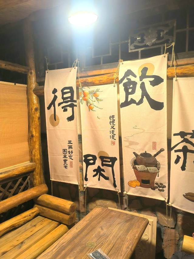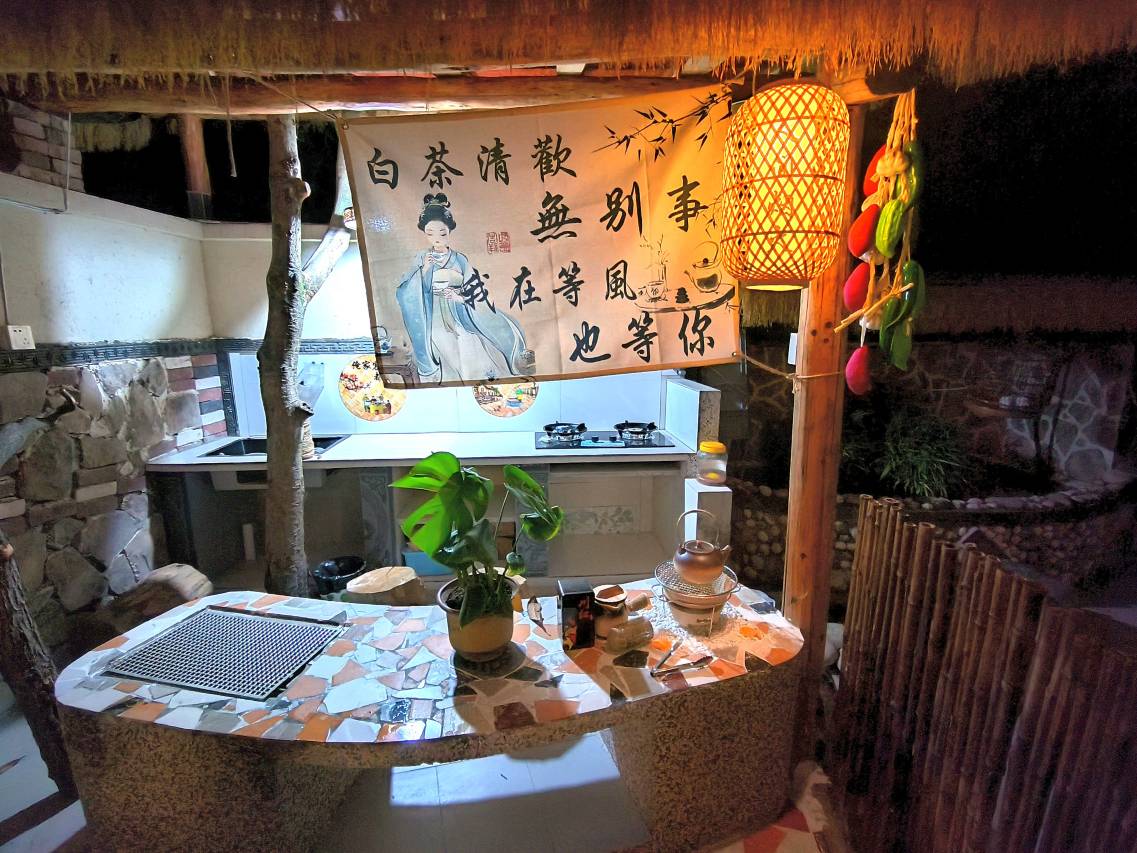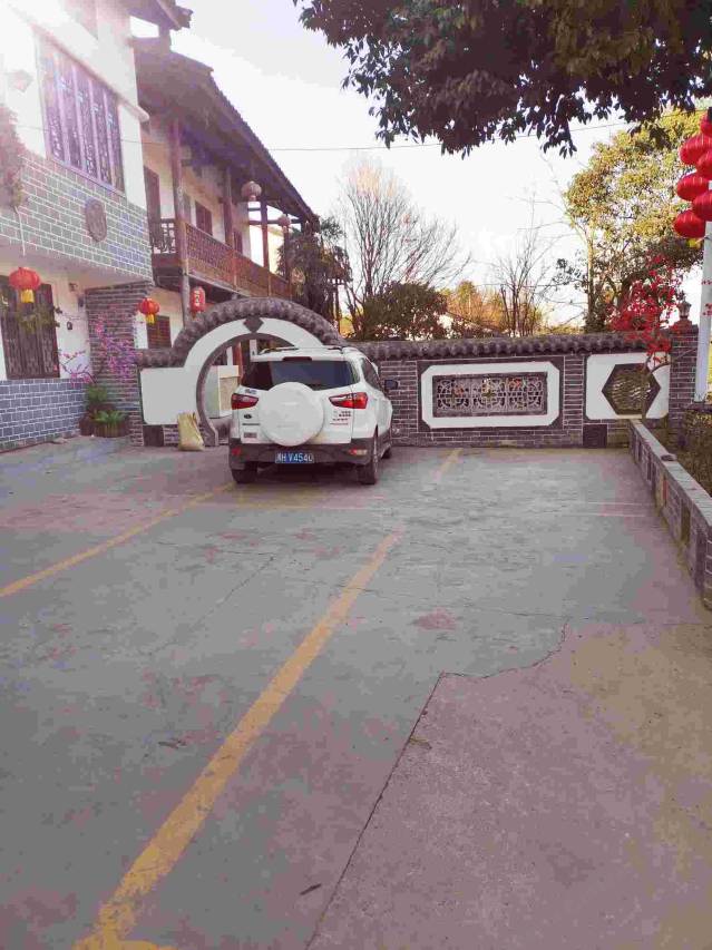 客栈在古城外围的路边,自驾交通算非常方便的。从客栈走几步路就到古城的核心区域。当晚是住在一楼院子边,设施齐全,后边还有一个花园,夜里开灯有氛围。厅里面有饮水机,喝水可以自助