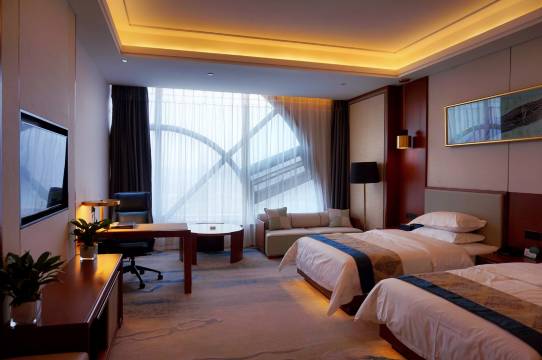 房间干净整洁,床品也比较舒服。交通方便,酒店有大的停车场,方便停车,离高铁站也近。早餐丰富,可以吃到现做的鸡蛋饼。前台也比较热情周到。特别是可以免费到一楼泡澡。