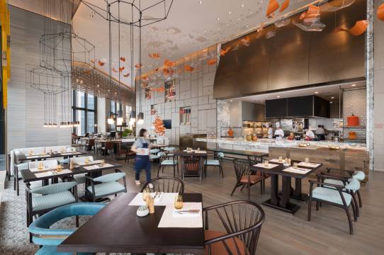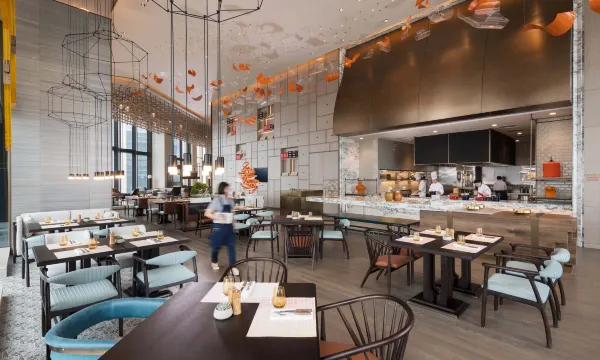 在悦空间里享受匠心早餐开启美好一天,或选择使用嘉悦里早餐打包服务将早餐送至你的房间。酒店的“御蓉”餐厅提供完美融合西方及亚式烹饪精髓的精致美食共享盘。当夜幕降临,在氛围愉悦、适合交流的“坊酒廊”里享受免费的精酿啤酒,葡萄酒或各式鸡尾酒。