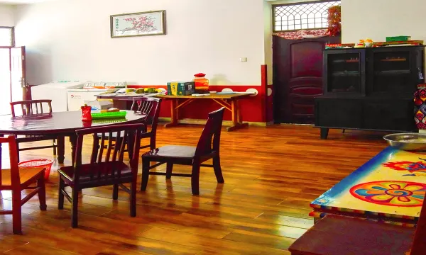这是一家非常有特色的藏族客栈,而且他的客厅非常的有特色,我们拍了很多美丽的照片,同时她的小院也很漂亮,老板家的苹果呀,李子呀,很甜,让随便吃,老板很友善,强烈推荐这样的客栈
