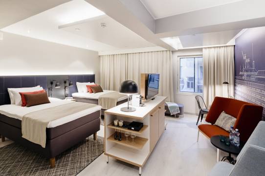 中文前台服务热情,不懂可随时咨询,房间送一瓶水,在北欧实属难得,早餐半自助,现做现点很贴心,地理位置也不错,门口3辆电车站去哪都行。