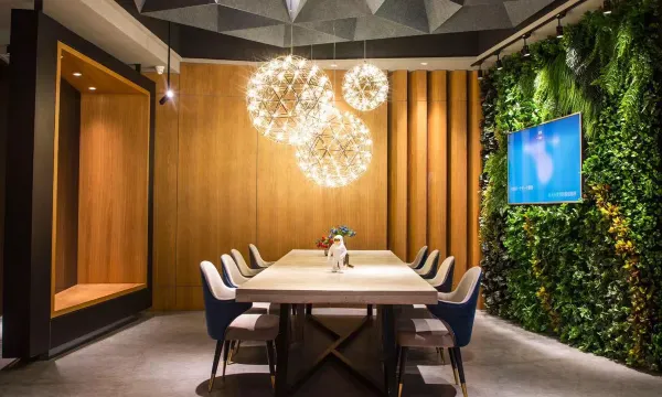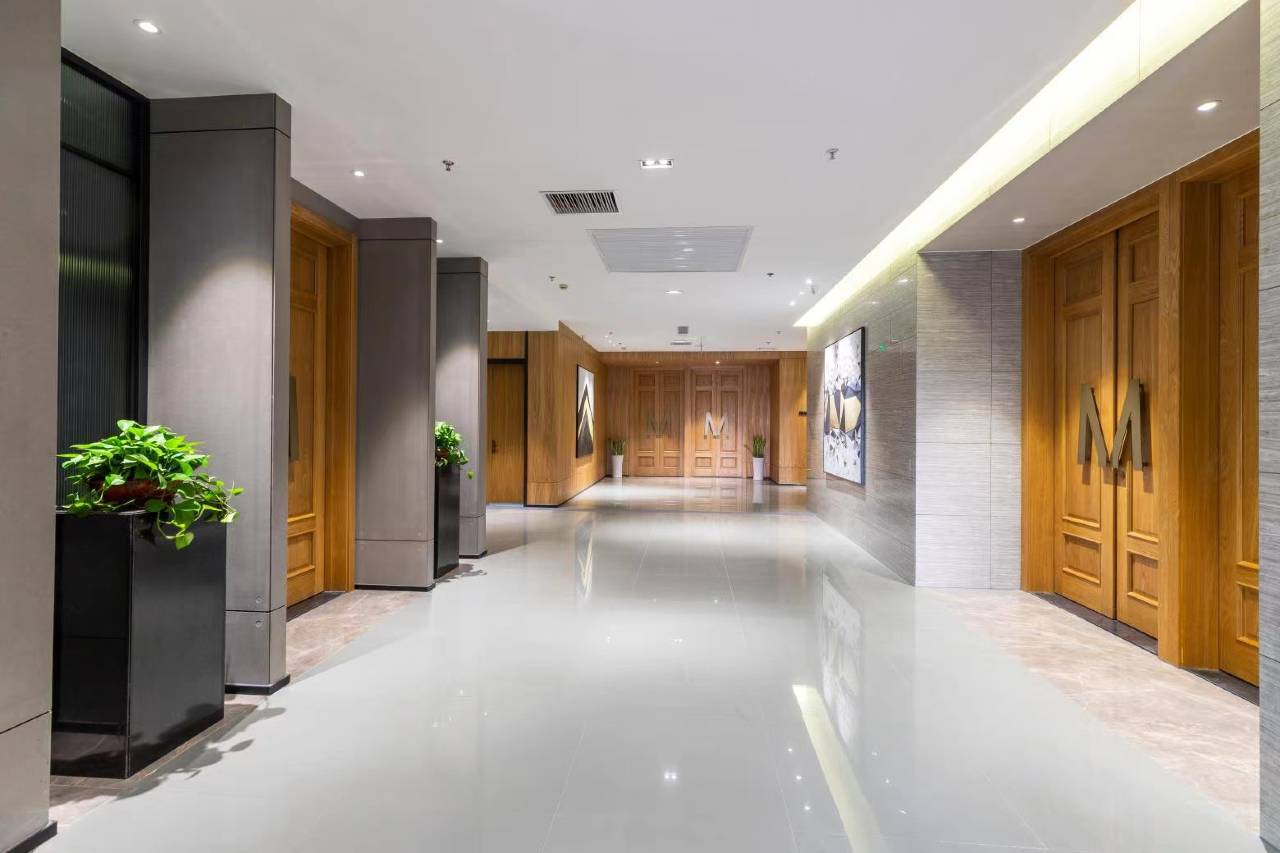 整体设计时尚现代,公共区域整洁有序,绿植、艺术摆件增添氛围感