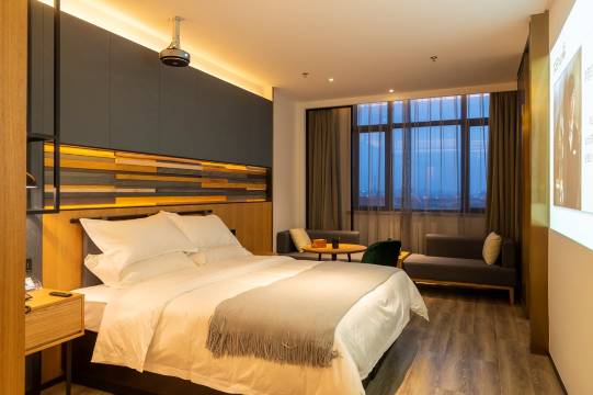 酒店装修风格采用休闲风,极简主义并非是简单空洞,而是专注于空间和材料本身,色调明快、温暖、简约,房间内均用投影仪代替了电视机,配备5.1.4杜比全景声系统,纳米级图层高清幕布,客房的装饰和布局上突出“大叔”雅痞风的装修设计风格和格调。