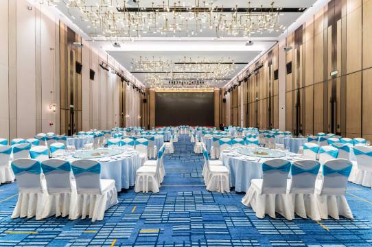 酒店拥有三百余间客房及套房,设施齐全,视野辽阔,从不同视角展示城市别致的风景,打造舒适、愉悦的下榻空间,是您商务休闲的睿智之选。 酒店拥有1280平米的天元大宴会厅、470平方米的紫金厅和7个多功能厅。宴会厅均配备有LED屏,是举办各类大型会议和社交宴会的理想优选。 酒店中餐厅「瑞云轩」菜品由专业且极富创意的厨师团队主理,宾客可在现代奢华风格与东方人文艺术完美融合的环境中,尽情品尝地道美味的闽粤美食。 空中行政酒廊Royal Lounge有着令人惊艳的酷炫设计,高科技的个性化灯光调配系统,融合音乐、美食等元素的日夜交替仪式,为尊贵宾客提供独特与私密的场所。