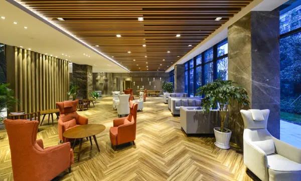 度假村,是德胧品牌旗下酒店。酒店毗邻AAAA级景区--中国竹子博览园,您不仅可以与国宝大熊猫为邻,还可以博览世界各地竹文化精髓。酒店集住宿、餐饮、会务、康乐、休闲于一体,总建筑面积38000平方米。酒店内配有311间/套极具特色的豪华客房,1200余个餐位、600平米的多功能厅、500平米的宴会厅及大小会议室4间,无边际戏水池、健身中心、棋牌、儿童乐园等康体娱乐设施一应俱全。