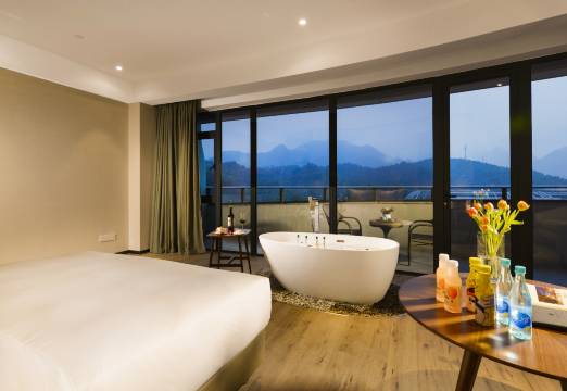 酒店位置特别方便,就在竹博园门口,下个楼就到了。房间宽敞,卫生干净,阳台望出去景色超级美,第一天到天气好,远处的山水和楼下建筑连在一起太好看了。酒店四处可见的熊猫,小朋友特别喜欢,还有淘气堡泳池和健身房乒乓球房,小朋友都可以玩一玩。早餐种类多样好吃,供应很及时,就是假期人有点多