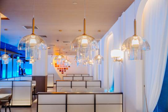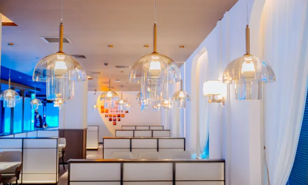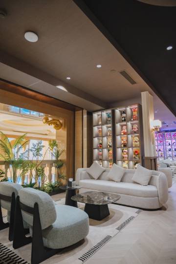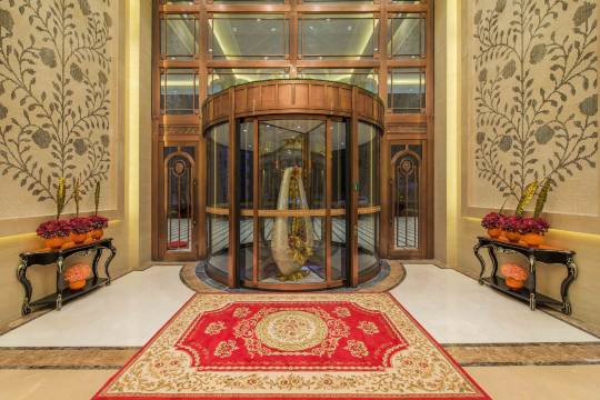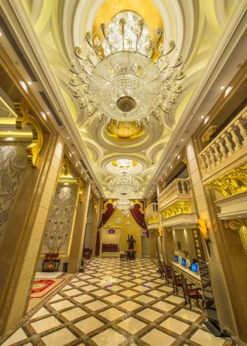 踏入酒店,宛如置身梦幻之境。大堂挑高穹顶,水晶吊灯璀璨生辉,走廊铺着质感地毯,房间落地窗视野开阔,窗外园林葱茏雅致。