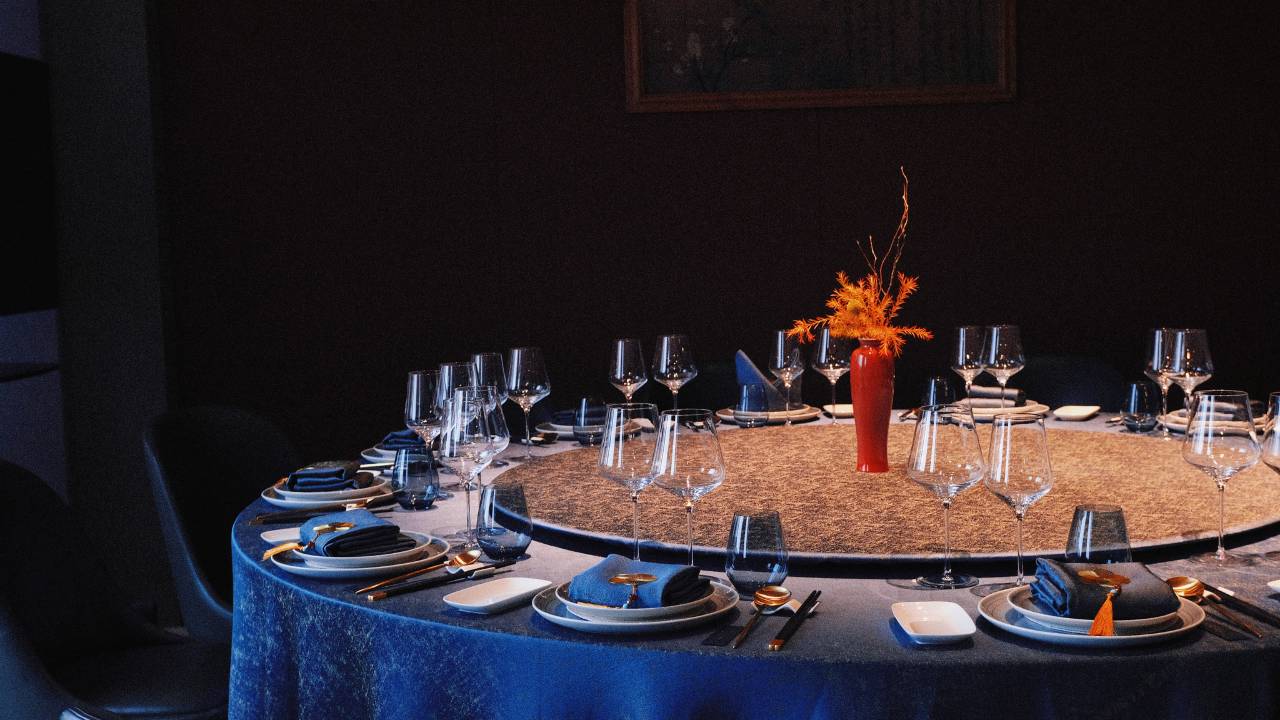 三面环山的一家特色酒店,红黑色调的高级感。