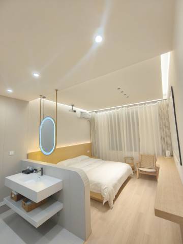 这家民宿的环境非常好,空气清新,让人心情愉悦。房间布置得很温馨,色彩搭配很舒服。设施很新,可以手机连接投影仪,空调制冷效果都很好。卫生间的镜子很大,很适合女生化妆。住在这里真的感觉特别棒