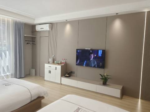 民宿留在南尖岩景区门口,房间刚刚装修过,我定的亲子房,房间很大,室内卫生,整洁。亮点1.落地大窗,电动窗帘,早晨睁眼后,遥控打开窗帘,躺床上就能看见云海,绝对让你眼前一亮,留下深刻印象。亮点2.老板娘夫妇服务态度特别热情,让我带着老婆孩子,真正的第一次感觉到宾至如归,下面说几件事情,大家自己体会,一是到店后,看我们是从江苏昆山赶过来的一家人,说4楼的房间还没定出去,可以把我们定的二楼房间免费升级到4楼,同样的房型房间。说高处房间,风景更好,这也是后来躺着看云海留着美好的回忆。要知道两间房价差200多呢。二是房东有朋友自远方来,做了烤全羊招待,竟然也送给我们一盘,买单时叫他算在里面,夫妇两坚决不同意,要知道我们自己点了4个菜,154元才收了150,搞得我们都有点不好意思了。而且还送了西瓜,中途我儿子都吃了两片了,老板跑过来说这个🍉不好吃,不甜,直接把我们剩下扔了,又端给我们一盘。这个细节真的很感动。三是听说我们要去王村口漂流,主动说他来打个电话,到那里后,报初见民宿,会便宜点,最终,网上.现场定139的票价,收100元一张,老婆不愿意漂,我和儿子门票省了78元,如果三人都漂,都快省出一顿晚饭钱了,而且告诉我们去**注册旅游年卡51.9可以玩80多个景点,门口的南尖岩,神龙谷都在里面,让我们又省了好些钱,具体大家对着门票价自己算吧。四是准备返程了,看着景区门口那个蜂巢蛮好的,儿子想吃。我就想买点,又不知道哪种好,就问了老板娘,她把她家冰箱里的蜂巢拿出来让我们先尝尝,觉得好吃再去买,我儿子说好吃,她把她老公叫来,让他去帮我们买点,我问过,100元一斤的蜂巢,竟然70元1斤帮我们拿下,帮我又省了60元。亮点3.这家的菜烧的真的蛮好的,让我们一家都眼前一亮,没想到民宿能吃到这个口味,特别是笋炒肉,干煸四季豆,酸辣藕,听老板娘说,有的菜是他老公亲自烧的。出来玩了一个星期了,这家民宿真的让我记忆深刻,也留下了美好的回忆。我为什么写这么多,因为我真的感动了。