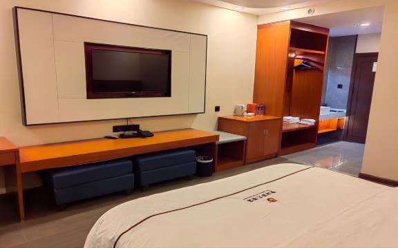 房间干净整洁,也挺大,设施齐全,早餐也不错,负一楼有停车场。前台服务态度很好,楼下有很多吃饭的地方,很方便,附近还有个景点。