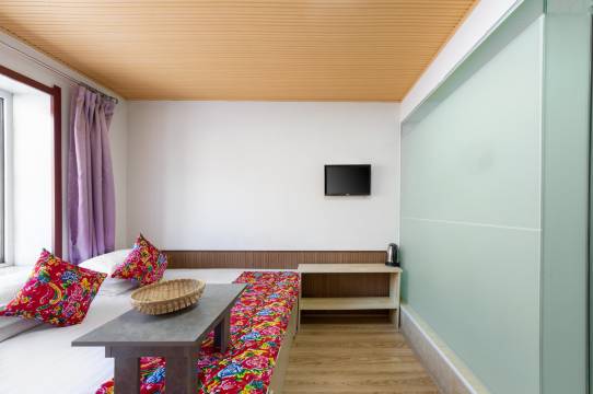 客栈设施设备齐全,配有24小时热水喝无限WiFi,床品均一客一换;房间内可以看见外面的雪景。房内有独立的卫生间,提供热水洗澡,房间温度暖和,干净卫生。