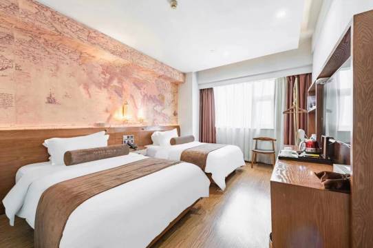 本店是以咖啡馆文化与酒店结合的酒店,围绕情怀、格调、氛围、商务特色,让商旅人士彰显个性和品位的体验。 【地址】石家庄市中山西路127号国贸大厦8-13楼。 【交通】:可乘坐石家庄地铁1号线或3号线到达新百广场地铁站(A)出口东行3分钟。距离石家庄火车站不远,乘坐地铁3号线路程到达新百广场站下车A出口东行3分钟即到酒店。距离机场巴士金圆大厦站(开往石家庄国际机场)近,距离机场大约路程40分钟。距离长途客运总站步行大约10分钟。市内多条公交线路可达。 【更多设施及服务】酒店与物业合作共用地下停车场,如有车位可停车,在停车场乘坐专用电梯可直达8楼酒店前台。公共书吧精选百本不同种类的书籍供客人阅读。酒店地处石家庄市中心繁华商业地段,紧邻万象城、新百广场、华强广场,毗邻南花园步行街、乐汇城、南三条、海悦天地、酒吧街等休闲娱乐购物场所及其它多项设施位置优,为各地的宾客提供宾至如归的尊贵服务。 【其他】客房面积以实际面积为准。