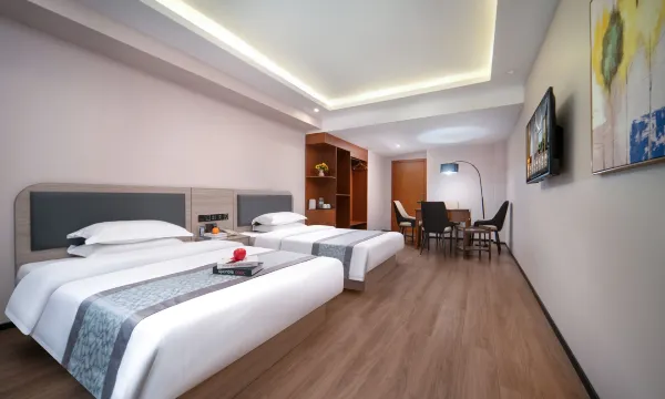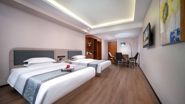 酒店配备各种各样的房型,房间数目多,能够满足客人的各种需求,配备有无缝WIFI、网络电视、24小时热水、中央空调、洗漱用品等多种配套用品,客房宽敞、干净、舒适,如“家”一般的能让住客有一个愉快的入住体验。