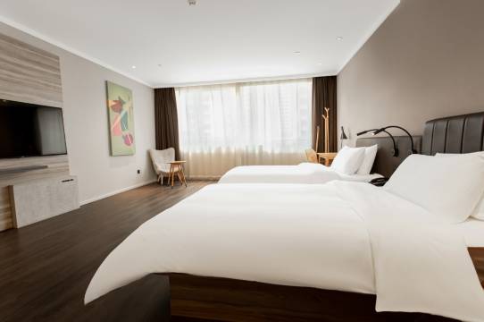 酒店设施齐全,前台图书都可以借阅到房间,前台服务热情很有耐心,还给免费升级了房型。交通购物都很方便,酒店不远处就有超市,离高铁站坐车也就十几分钟的时间,卫生环境和服务都无可挑剔