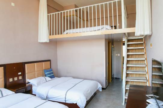 好停车,出入很方便。家庭复式房间,挺有特点的。前台热情,我说先看看房间,她很热情的带我去看。还说着不住也不要紧。来到这个地方,我儿子最兴奋