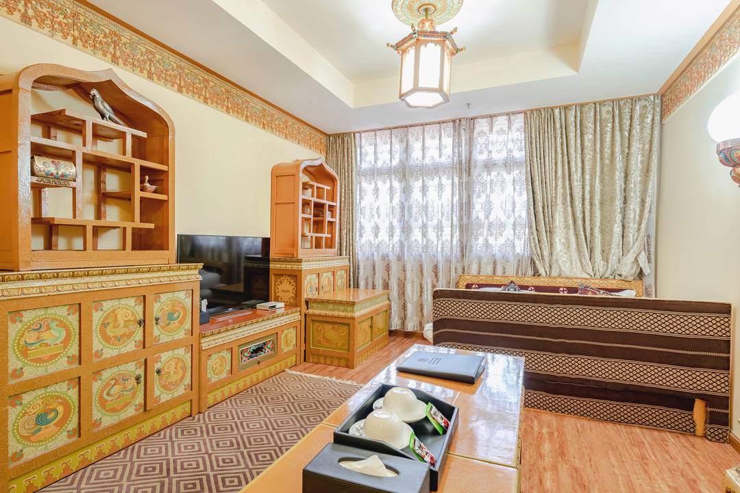 房间设施齐全,藏式风格,可供氧,服务周到,客房服务人员能够及时响应客人的需求,礼貌、待人亲切友善,房间非常适合一家四口住宿,距离八廓街、布宫、大昭寺等景点就10分钟左右步行时间,适合旅游住宿。