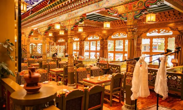 酒店地处林廓北路,地理位置得天独厚。西可凭窗眺望太阳余辉中的布达拉宫,感受其庄严肃穆之美;南可透窗嗅到大、小昭寺桑烟的清香,体验藏传佛教的宁静与祥和;北可极目藏传佛教六大名寺之一的色拉寺,领略其深厚的宗教文化底蕴。酒店内,藏式套间装潢富丽堂皇,尽显藏族风情;藏式大床房则为您提供一个卸下疲惫、安心入眠的温馨空间。我们特别配备太阳能热水器,确保浴室24小时供应热水,让您随时享受舒适的沐浴体验。餐厅可容纳120人同时用餐,提供地道的藏餐、美味的川菜和粤菜,满足您的不同口味需求。此外,我们还设有停车场,方便您停放爱车。在商务方面,多功能厅和商务中心为您提供传真、复印和打字服务,满足您的各种商务需求。闲暇之余,不妨前往楼顶暖棚式茶园,沉浸于一壶香茗之中,远离尘嚣,享受片刻的宁静与悠闲,感受岁月静好的美好时光。