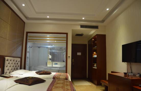 宾馆在县城中心位置,房间也挺大的,卫生也可以,前台服务也很不错,停车也方便,前面就是个大广场楼下有超市,购物也很方便,也有很多饭馆,性价比还不错,会继续支持。