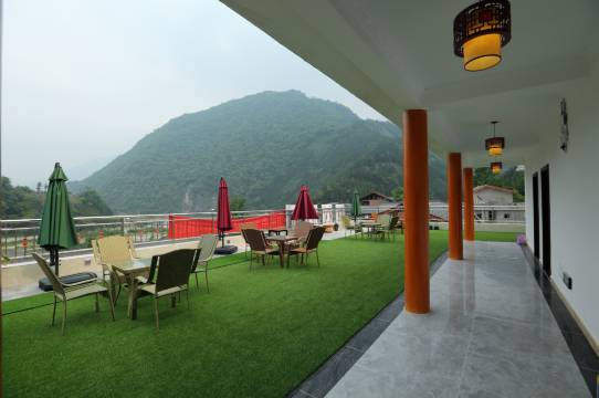 顶楼观光休闲平台是亮点,可以观看四面群山,夏季凉风阵阵,品茶、休闲、娱乐均十分适合。