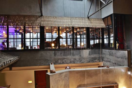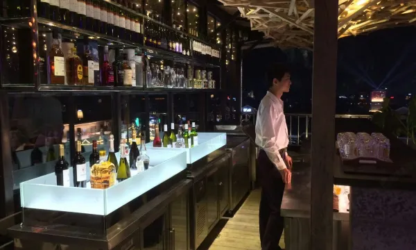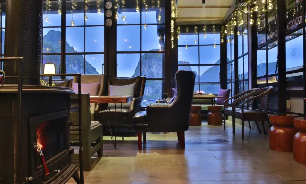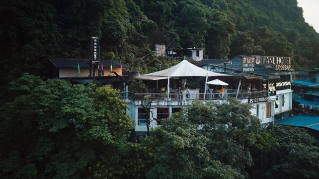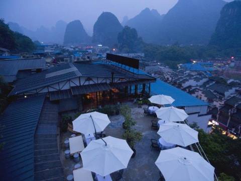 酒店倚坐在西南方的半山腰上,落差28米倚山而建。位于顶楼的明.泰国露台音乐餐厅是阳朔建筑物的制高点,可以独揽西街全景的观景阳台,确保所有宾客180度俯瞰整个阳朔西街的美妙景致。柔和的灯光、悠扬的音乐、诱人的红酒,带着一颗脱离尘嚣已久的心,跟随着这样的节奏释放,享受一份独有的悠然。