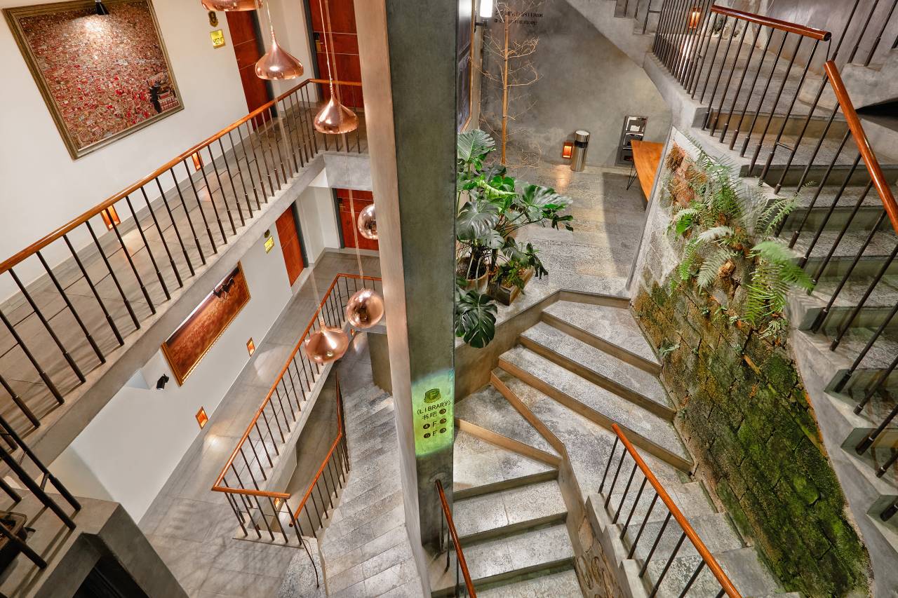 酒店设计,楼梯和房间的分布很有特色,有电梯,订的亲子房间窗外能看到西街,晚上不算吵,楼顶五楼能俯瞰西街全貌,还送了酒店特饮,性价比很高的一家设计酒店。