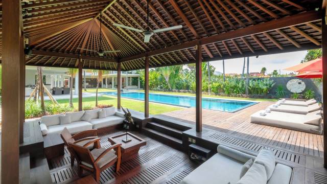 这个别墅位于仓古贝拉瓦,距离水明漾海滩和饮食街不到 10 分钟车程。 此豪华别墅距离勒吉安海滩 5.6 英里(9 公里),距离库塔海滩 8.2 英里(13.2 公里)。