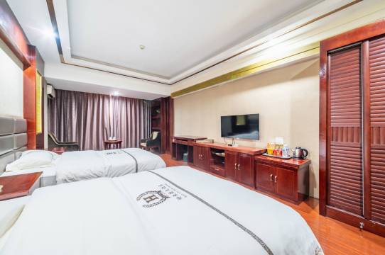 酒店共9层,建筑面积约4800余平方米,是具有民族特色的建筑,酒店按高标准高品质配置。内设客房、多媒体商务会议室、棋牌室、早餐厅、品牌电梯、空气能供热。其中客房多种,豪华单间,豪华标间,商务单间,商务标间,VIP间,可同时容纳88人入住。房间设施配备齐全,均配有电脑可免费上网、4K百兆高清大屏幕电视、冷暖空调、安华卫浴、丰品布草、豪华舒适大床、电动躺椅、卡组合沙发、免费提供特色自助早餐、国内长途市话免费聊,更有wifi随时畅享无线上网。房间内的洗浴设施可为您洗去身心的疲惫,享受轻松与惬意。