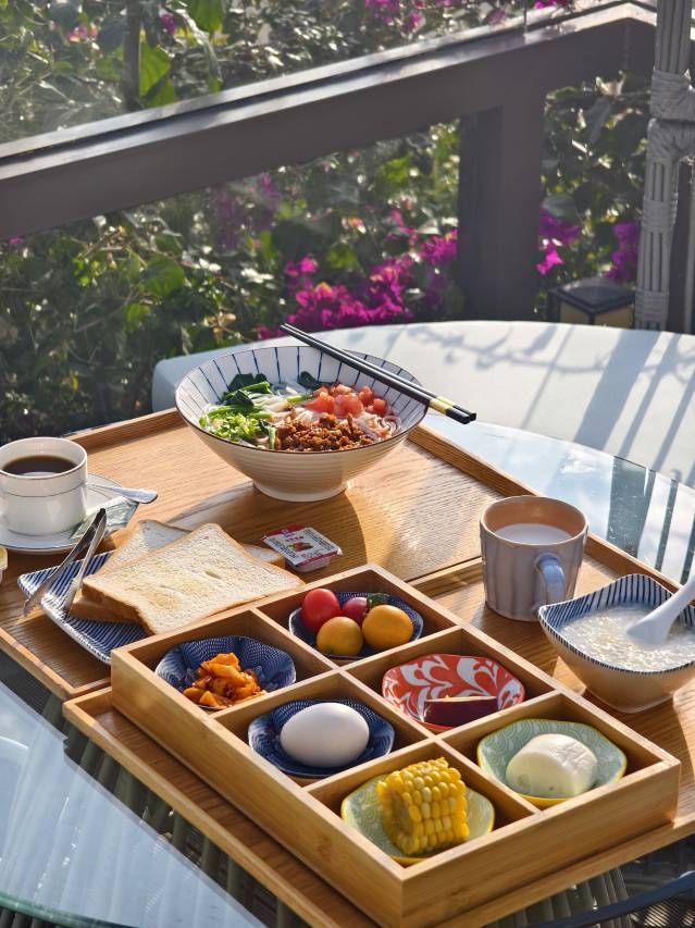 洱海边的酒店,绝美!睁眼便可以看到日出,出门就可以租自行车环洱海,周围人不多,很清净,适合度假休假。酒店的服务也很贴心,九宫格下午茶、欢迎水果、丰盛的早餐,一切都很好~下次还要来。
