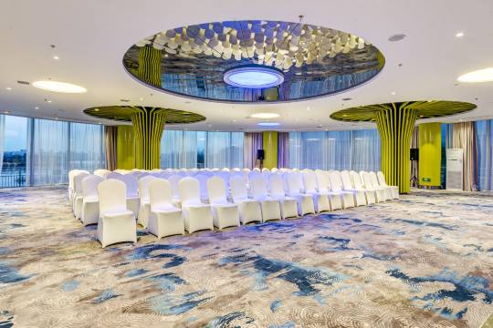 唐山南湖足球主题酒店坐落于唐山南湖中心区,建筑面积28000平方米。旨在融合“激情活跃、运动时尚”的主题风格和休闲时尚的主题理念,打造集住宿、餐饮、娱乐、康体为一体、主题鲜明的国内一家足球运动特色大型酒店。酒店充分融入足球主题文化元素,功能分为大堂吧、多功能厅、足球酒吧、康体理疗、餐饮、足球主题客房六大特色空间,不同区域展示足球发展历史、讲述足球故事,让宾客体验独具特色的旅居氛围。酒店建成后,结合南湖足球训练基地举办各类足球赛事、会议,为南湖景区游客提供休闲体验场所。