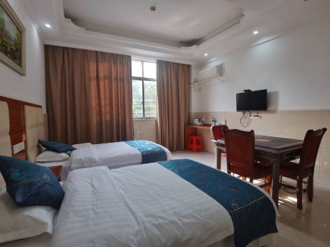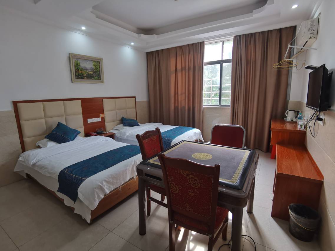 来考试的,房间很干净,设施看起来也比较新,双床房标间比想象中小一点,但是设施都挺齐全的,老板人也很好,有机会下次还来